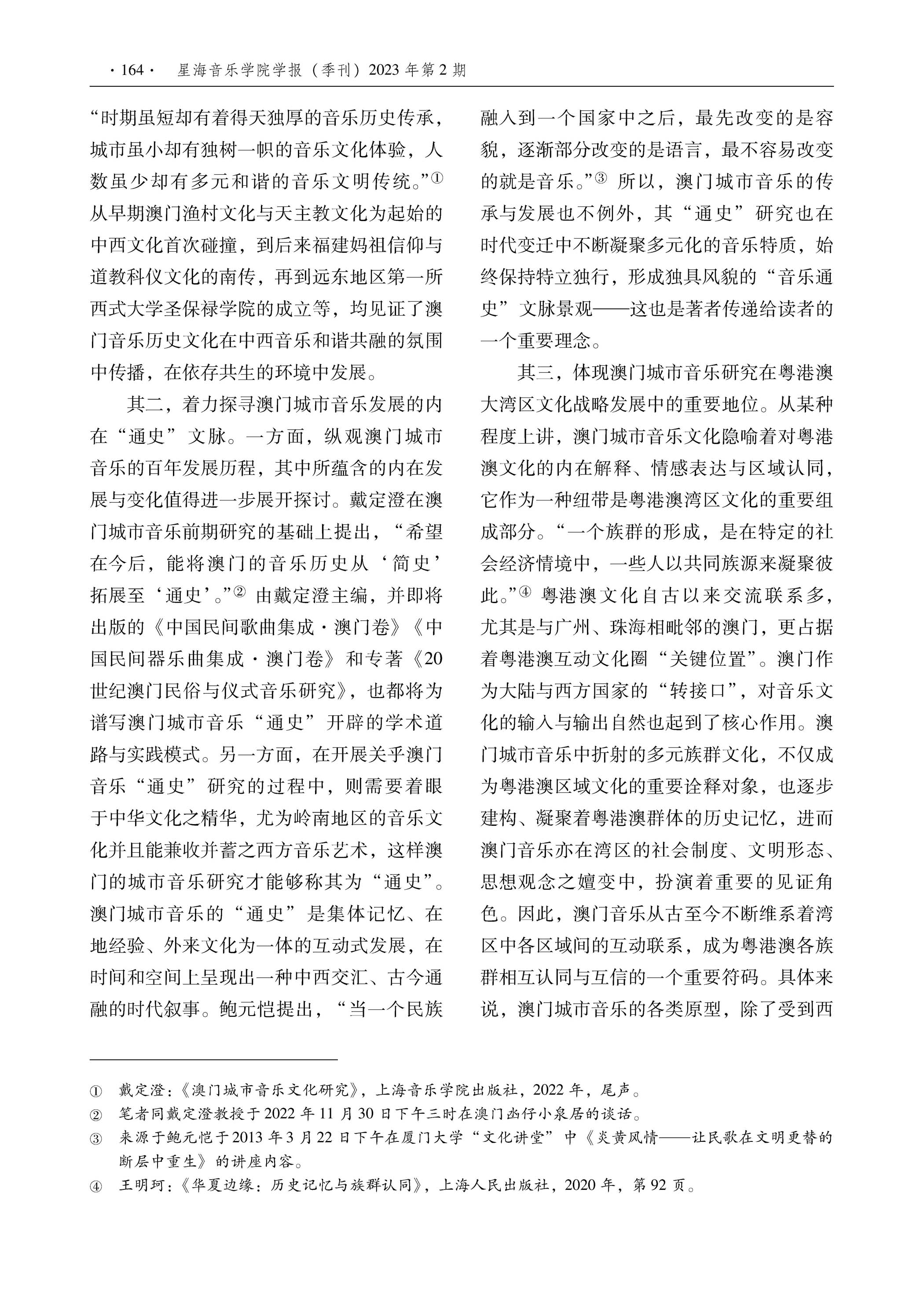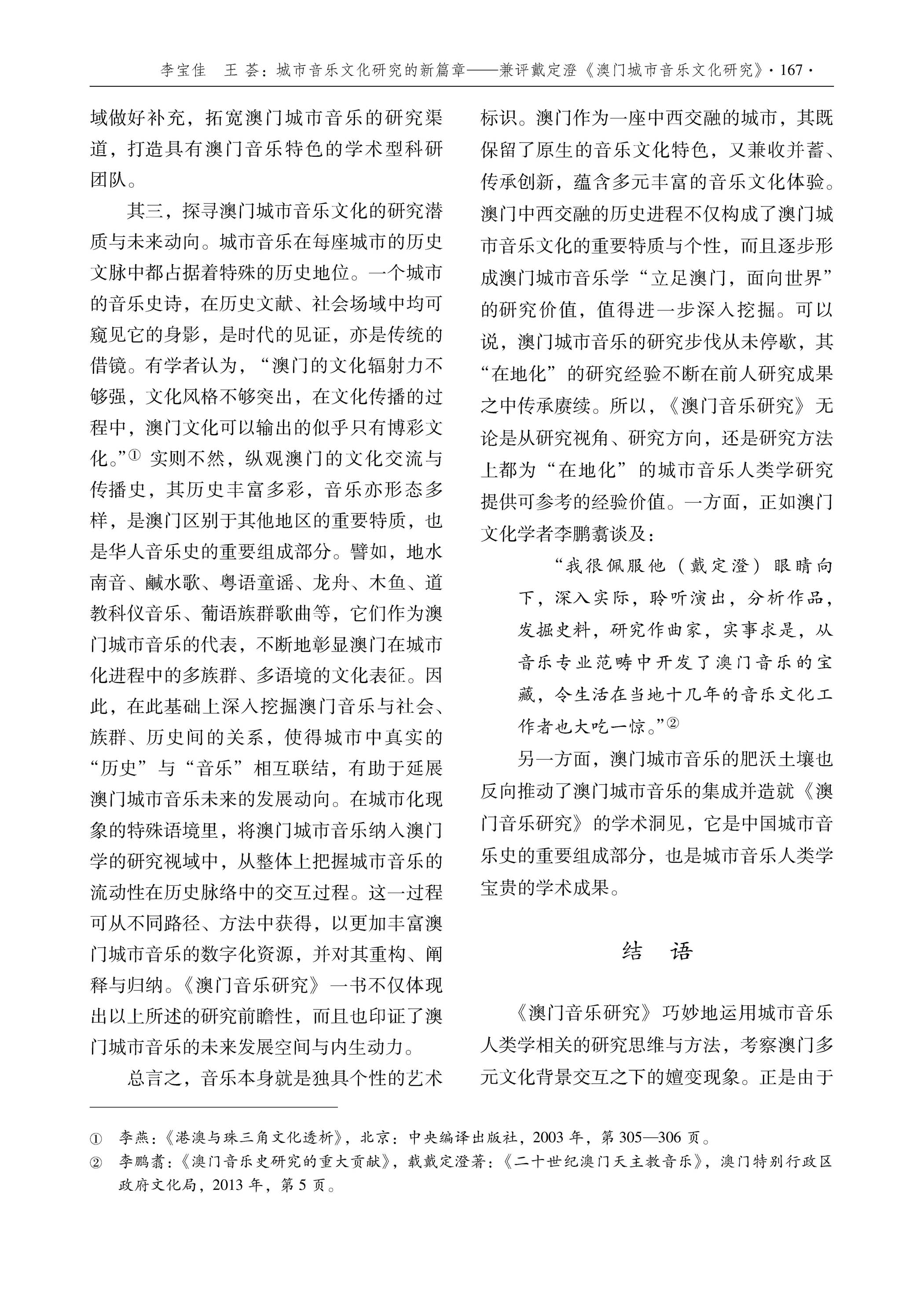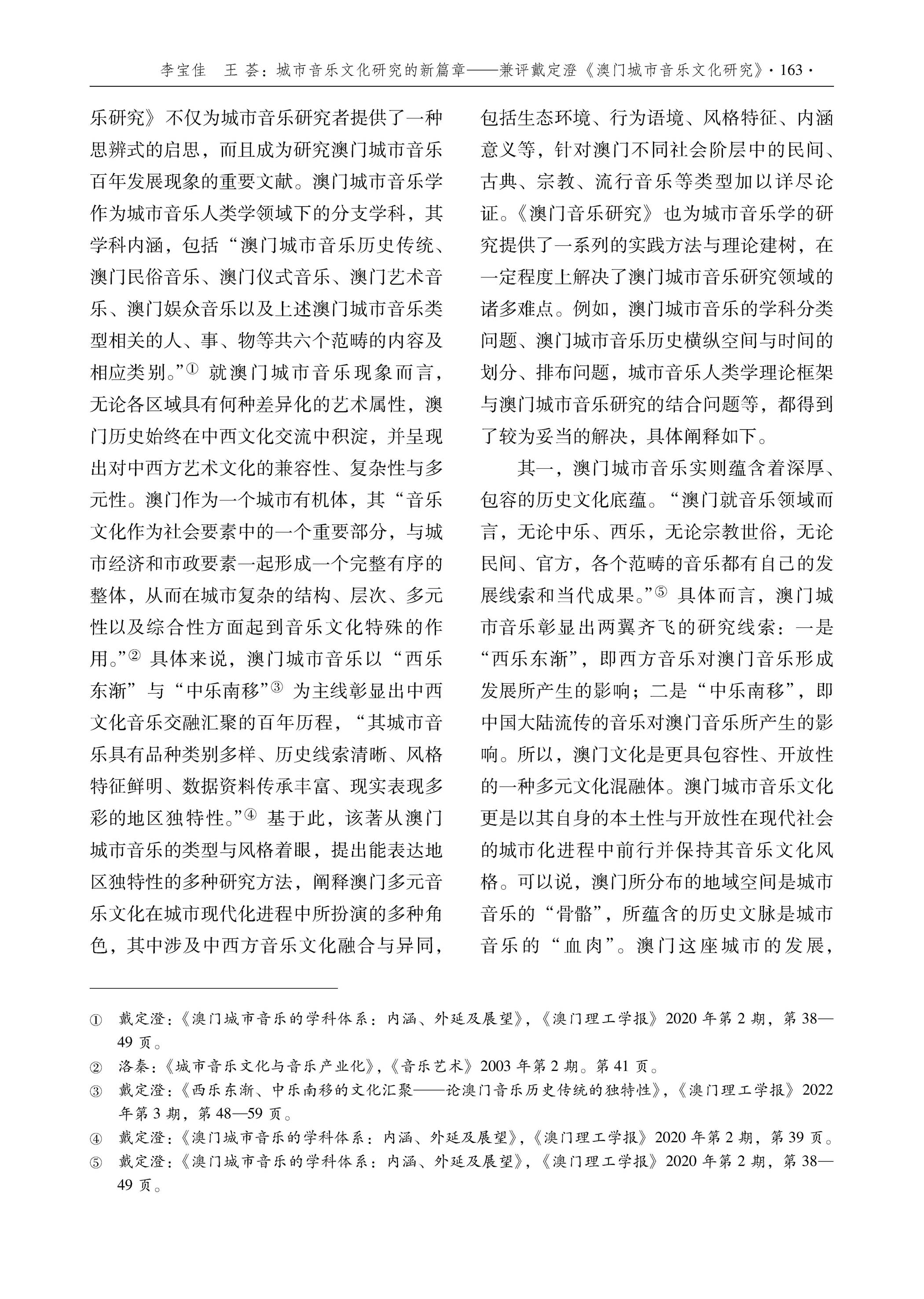 >>外界評價 學術界對戴定澄研究成果的評論李寶佳 王薈 :城市音乐文化研究的新篇章 ——兼评戴定澄《澳门城市音乐文化研究》廣州,星海音樂學院學報 ,2023年第二期 |