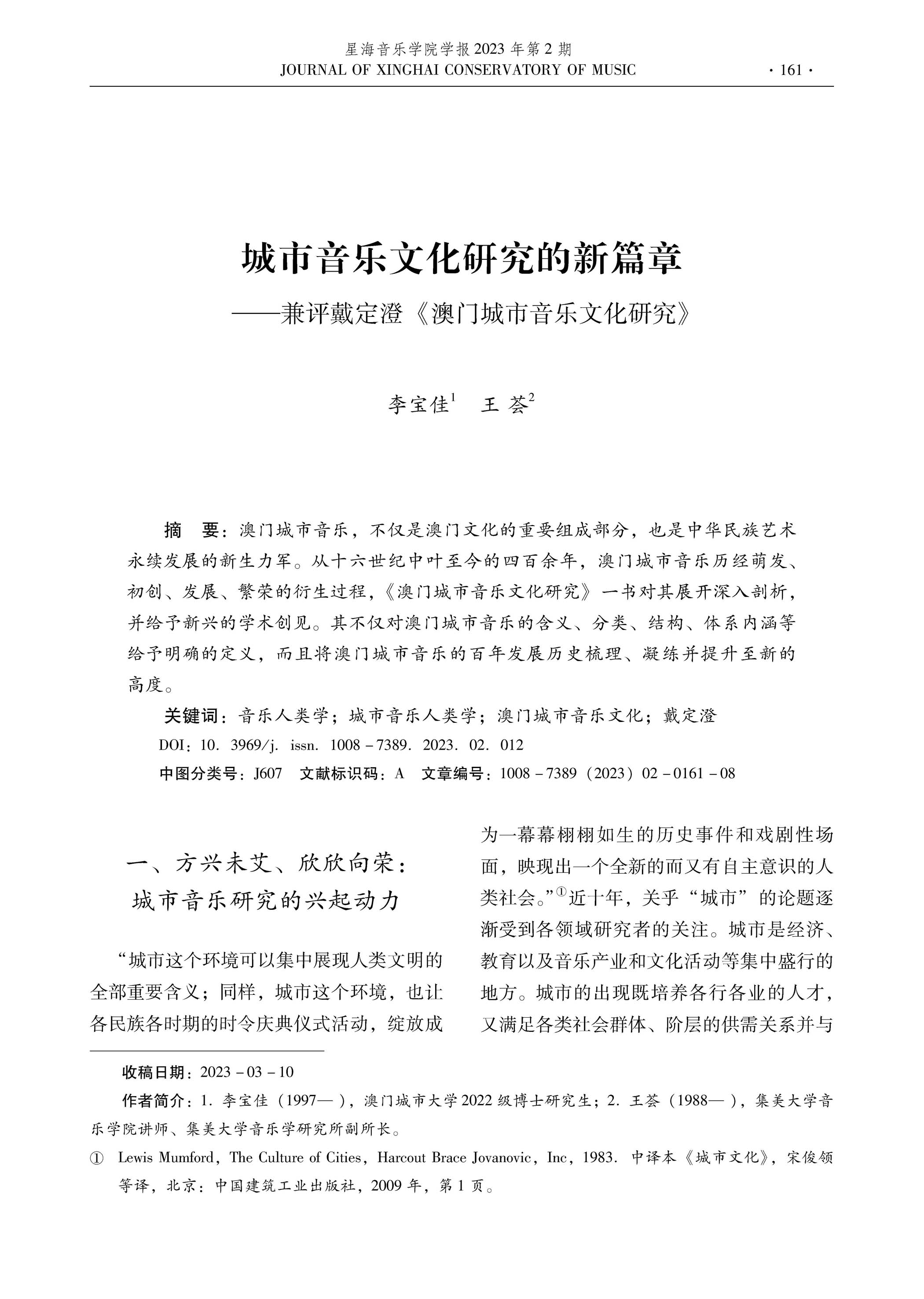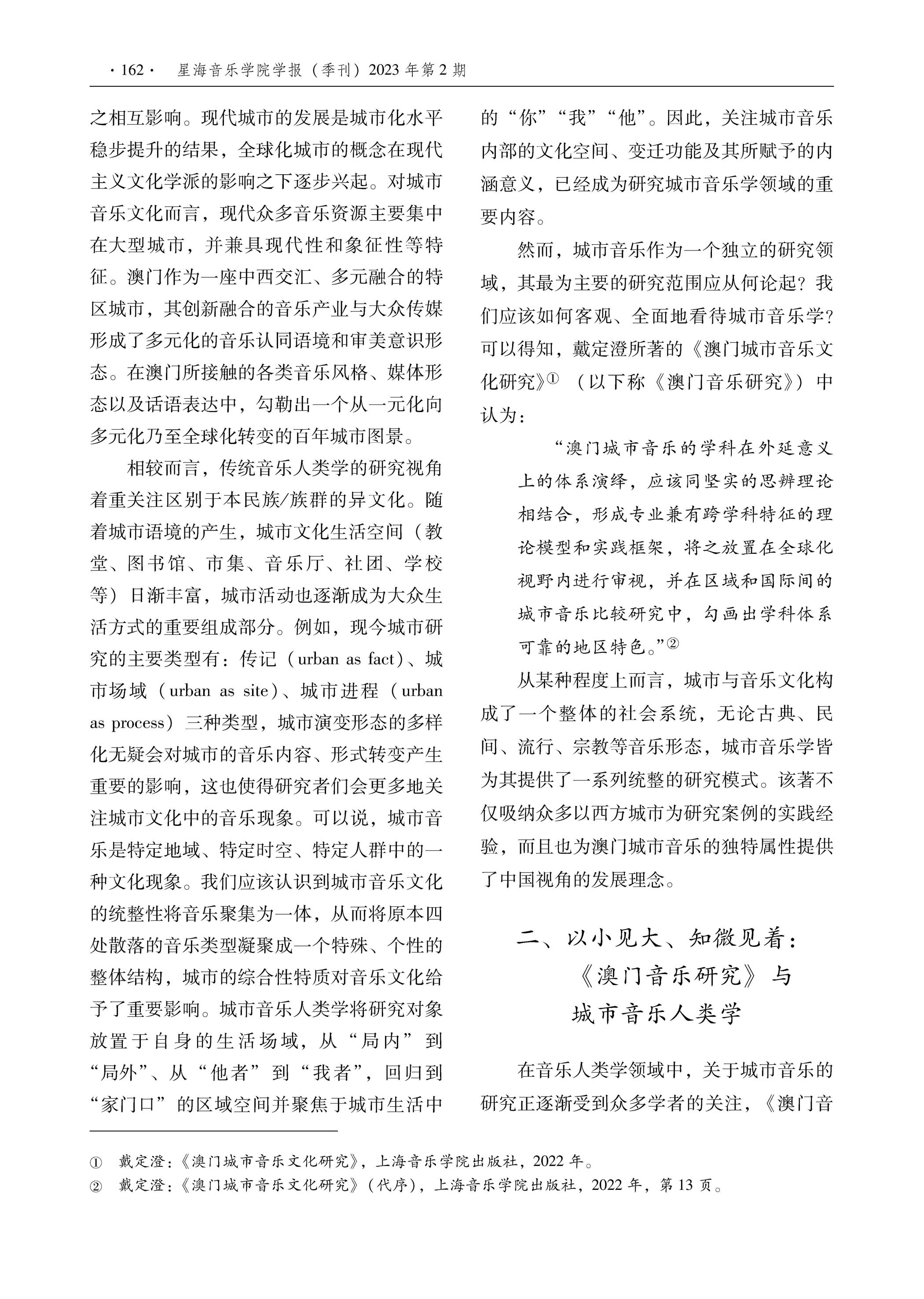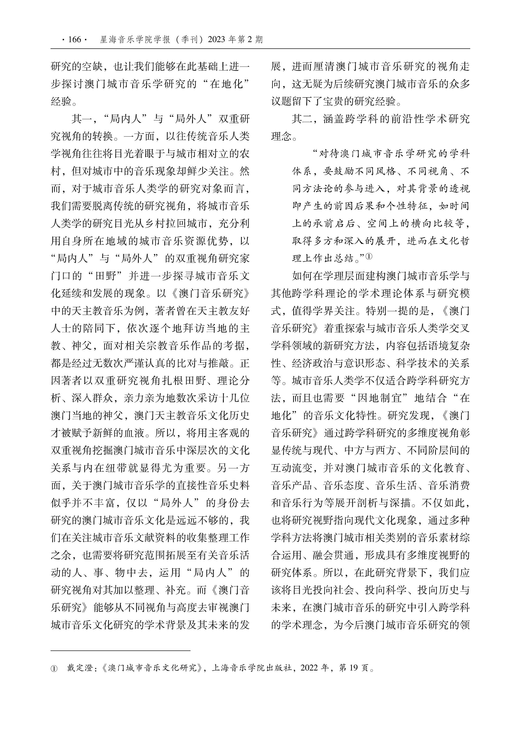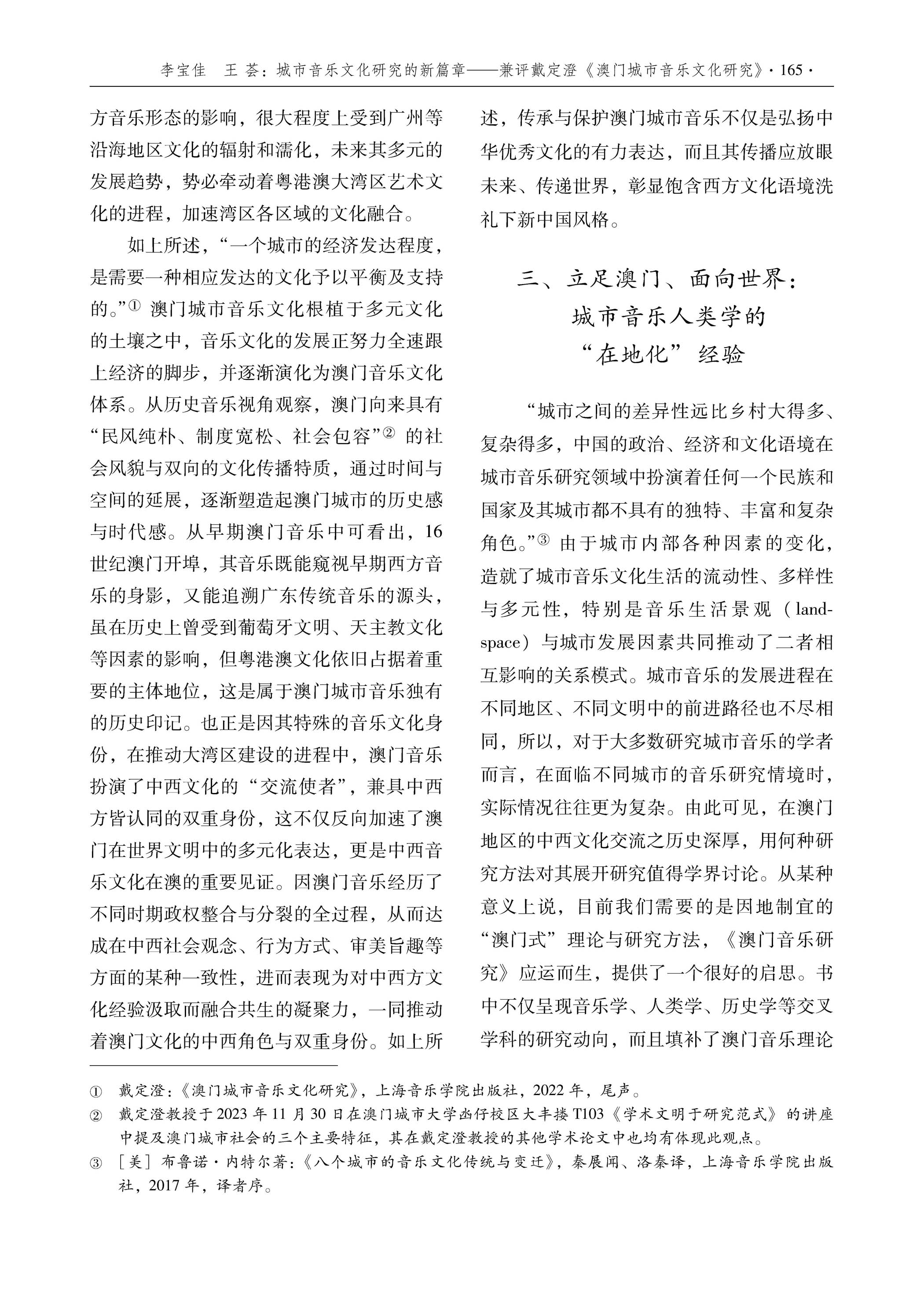 >>外界評價 學術界對戴定澄研究成果的評論李寶佳 王薈 :城市音乐文化研究的新篇章 ——兼评戴定澄《澳门城市音乐文化研究》廣州,星海音樂學院學報 ,2023年第二期 |