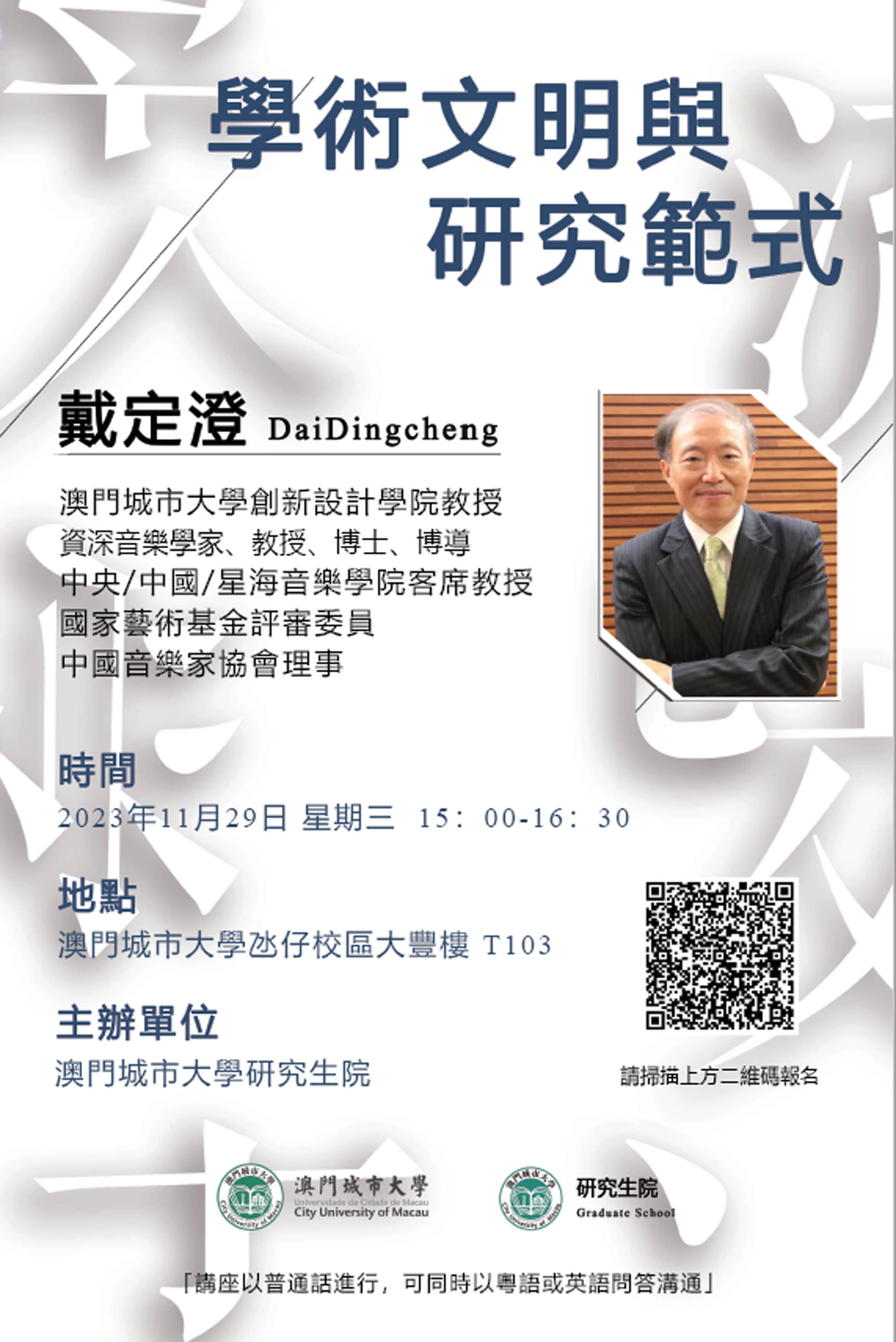 2023-11-29澳門城市大學氹仔校區大豐樓T103《學術文明與研究範式》講座 |