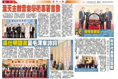 返回 >>媒體 MEDIA澳天主教音樂學術專著首發澳門日報2013-10-19