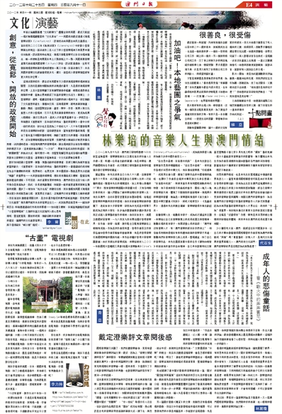 返回媒體 MEDIA >>報刊評價(學術界對戴定澄研究成果的評論)>>林麗瓊戴定澄樂評文章閱後感澳門日報 2012-10-25