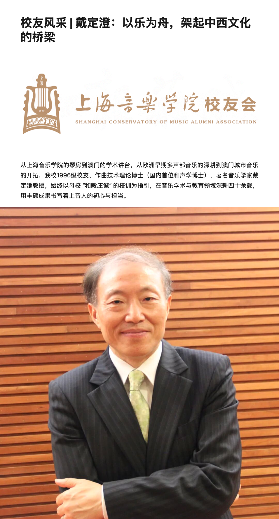 >>外界評價 學術界對戴定澄研究成果的評論校友風采 I 戴定澄:以樂為舟,架起中西文化的橋梁上海音樂學院校友會 SHANGHAI CONSERVATORY OF MUSIC ALUMNI ASSOCIATION |